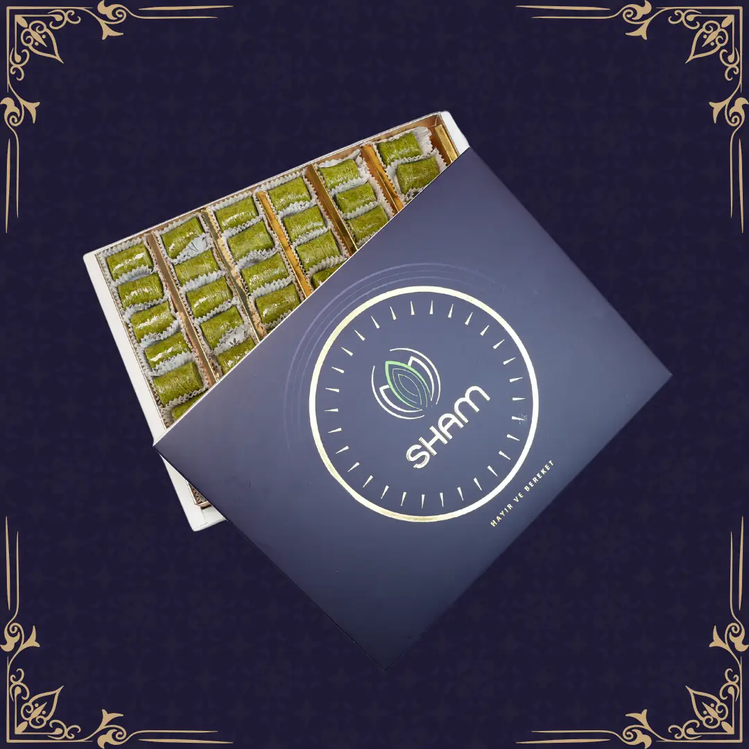 رقائق من عجين البقلاوة ملفوفة بحشوة الفستق الحلبي على شكل أصابع ومحلاة بالقطر